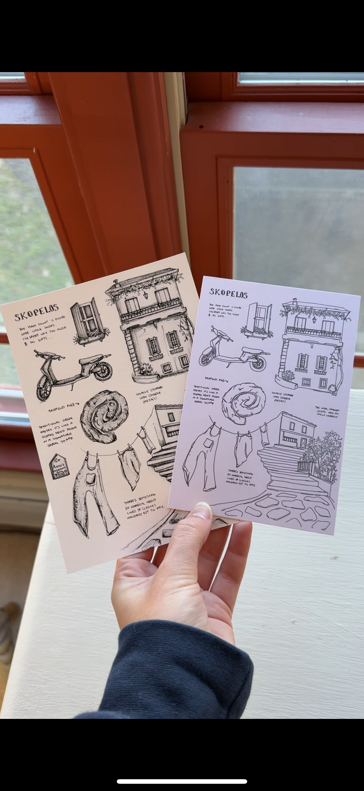 The Postcard club brings together my love for travel and illustration, as I’ve gotten back into both this past year. Every month I take one of my travel sketches straight from my sketchbook and turn it into a fine art print. I include a mini postcard version that you can color in or even practice your own sketching on in hopes to inspire creativity and connection in your life.